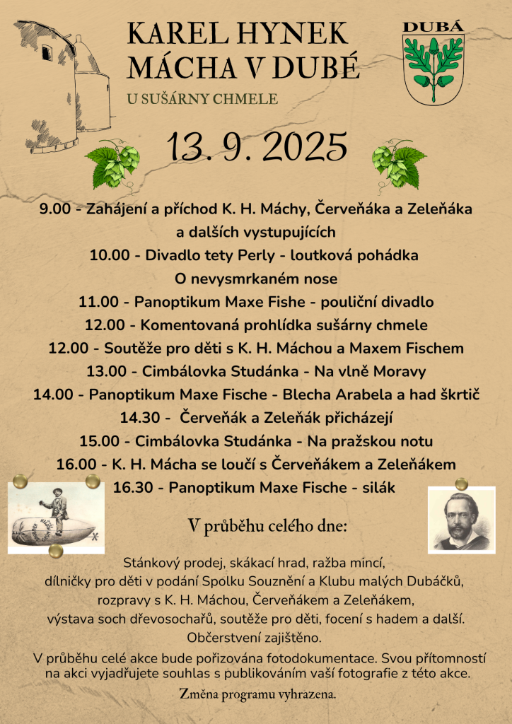 Zveme vás na jedinečný den plný divadla, hudby, zábavy pro děti i dospělé – a především na setkání s duchem Karla Hynka Máchy.